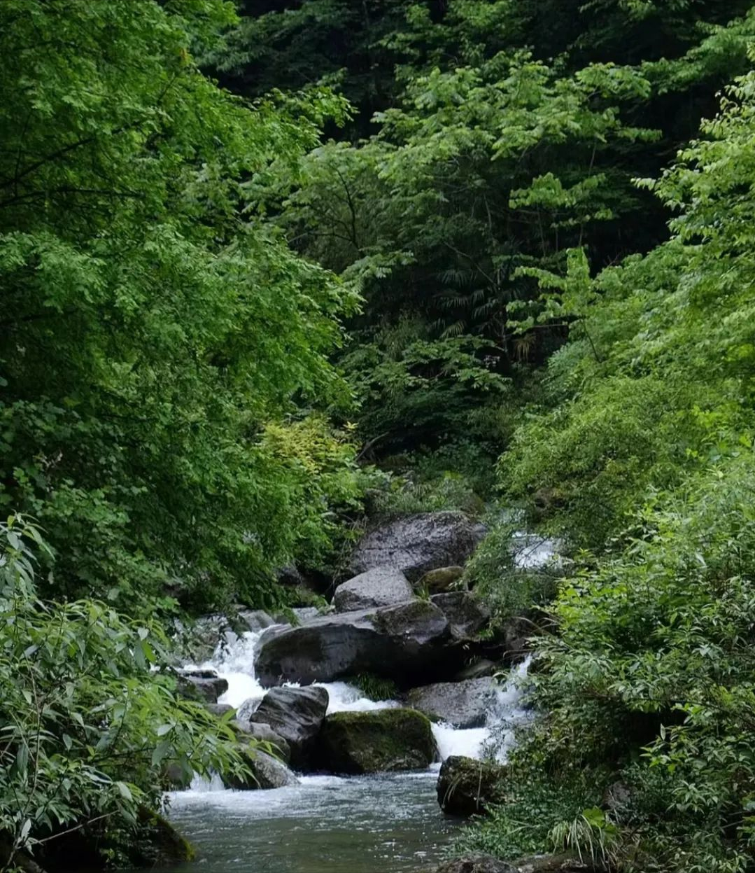这里山清水秀,环境清幽,沿途植被葱郁、溪水潺潺,生态极佳。
